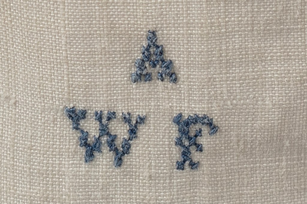 The last point of interest is a beautifully embroidered sky-blue silk laundry cross-stitched marker midway up the right-side split, AWF. One can only speculate what the initials AWF may stand for; in my romantic imagination, it is ‘Aldermaston William’s Finest!’ Of course, it will always be conjecture as to who the original owner of the shirt was. However, this heirloom was considered valuable, either for monetary or emotional reasons, and designated as important enough to be kept, treasured, and passed down through generations of one family. Connective social history can be rediscovered from diligent, informed research which brings forth these fascinating stories.